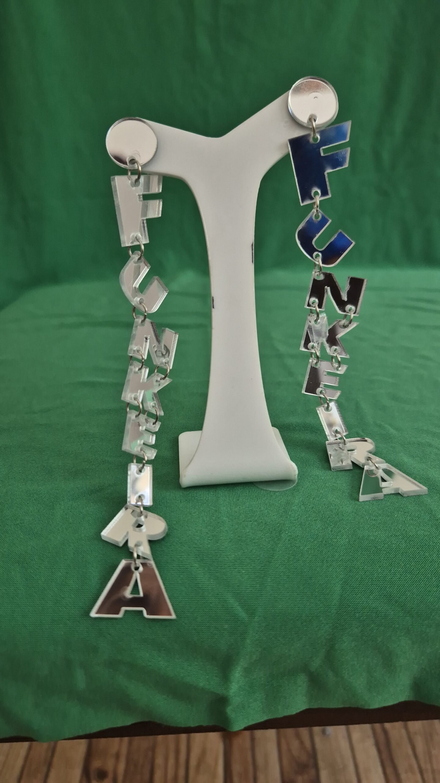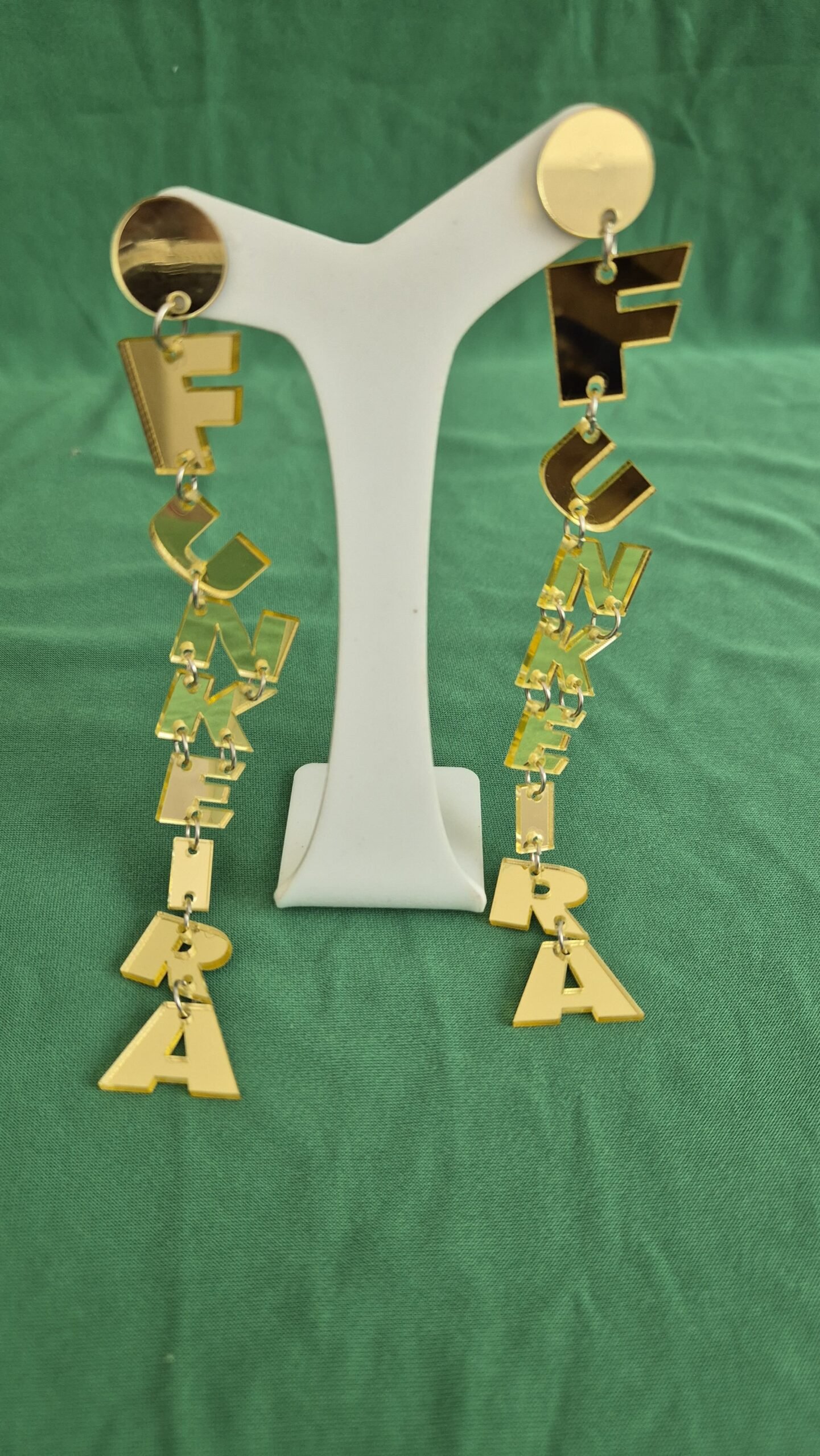 Brinco espelhado em resina, divertido e cheio de estilo, perfeito para quem ama o brilho do funk e quer destacar sua personalidade.